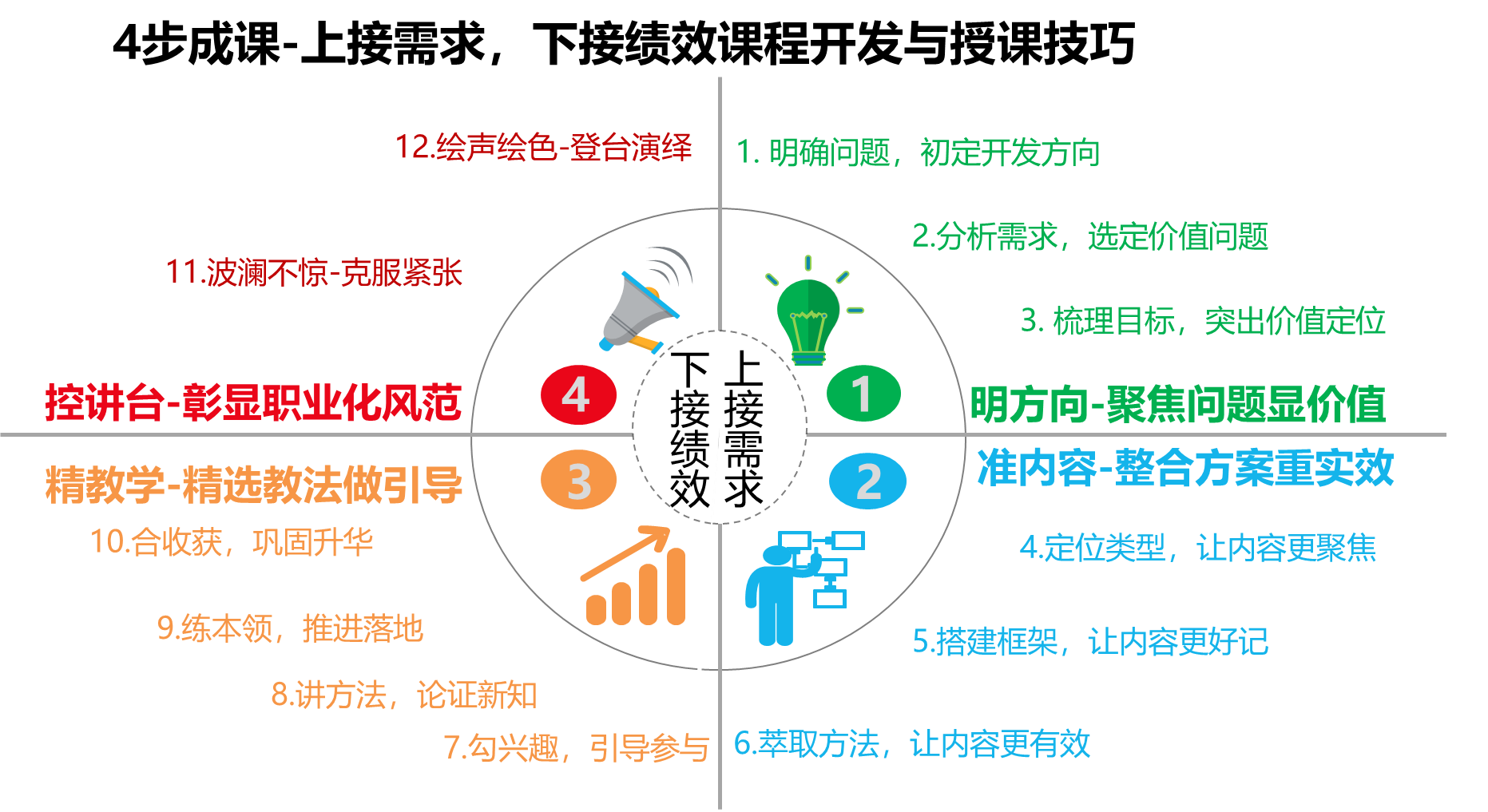 標準運用:標準語言、肢體語言、控場技巧進行授課,彰顯職業(yè)化風范與感染力;